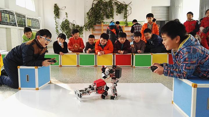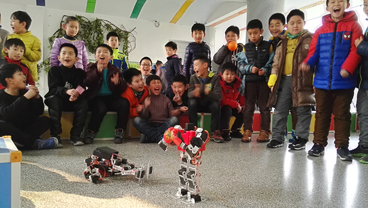 今天的“元旦游園會”舉辦的非常成功,機(jī)器人搏擊賽更是讓此次活動錦上添花,也贏得了很多孩子們的注意力。學(xué)生們不自覺地被機(jī)器人的魅力吸引,好奇會鼓勵他們在未來的學(xué)習(xí)及生活中會更多的去主動接觸科學(xué)、探索更多關(guān)于機(jī)器人的奧秘,對學(xué)生的成才起到了很大的助推作用。未來是屬于孩子們的,未來是屬于科技的。